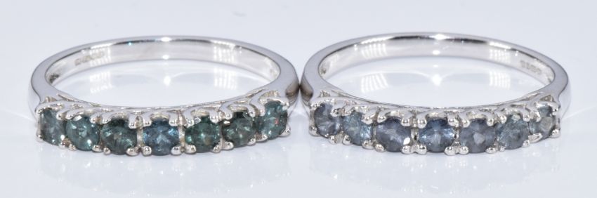 Two 9k white gold rings, both set with round cut colour change garnets, 4.4g, size N