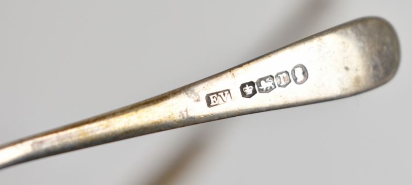 Georgian and later hallmarked silver cutlery to include a Georgian sifter ladle, Victorian Dublin hallmarked spoon and five grapefruit spoons, length of longest 16.5cm, weight of all items 246g
