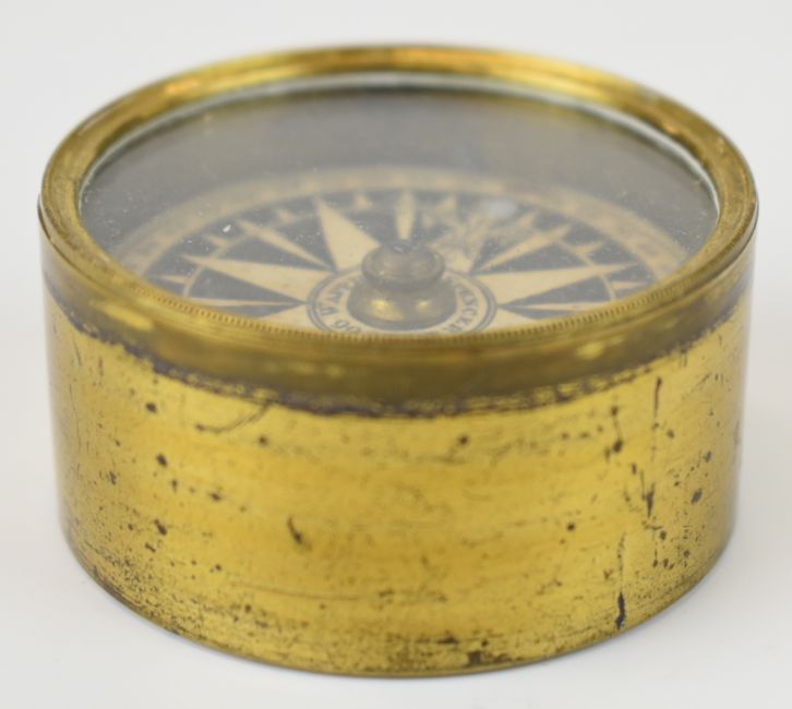 Spencer & Co Wapping No 66 Georgian explorer's or ship's or similar small compass, in gilt metal case with lid, diameter 5.5cm