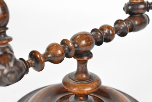 Georgian mahogany adjustable dressing table mirror with bobbin turned wood frame, height 40cm
