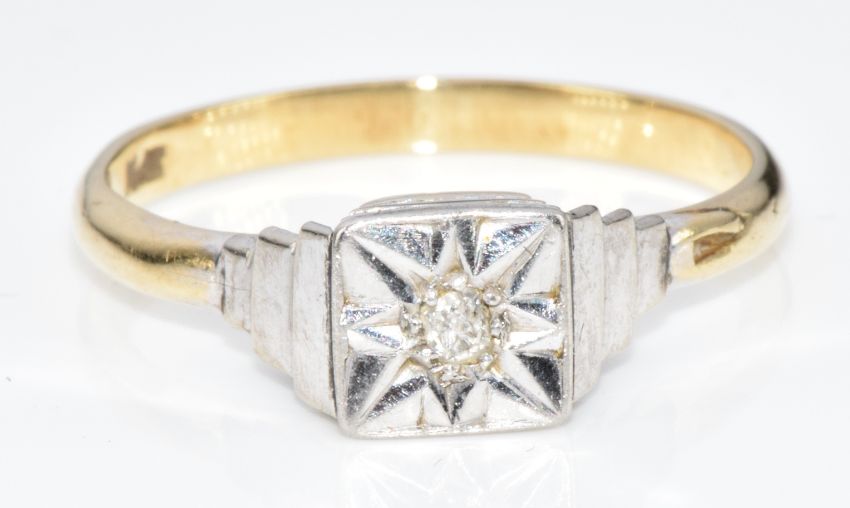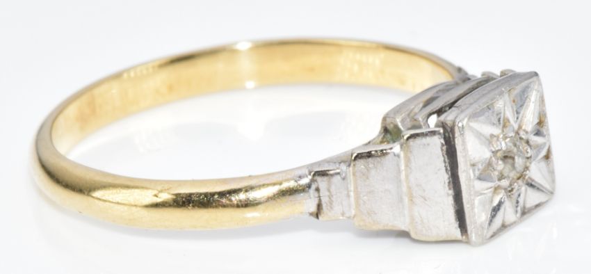 An 18ct gold ring set with a diamond in a platinum illusion setting, 2.2g, size L