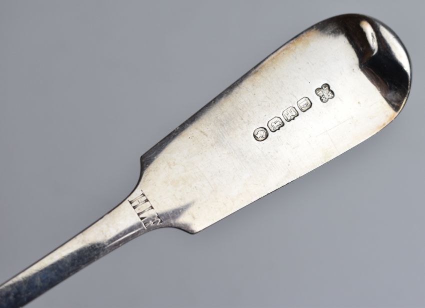 Pair of Victorian hallmarked silver fiddle pattern basting spoons, Exeter 1861/63, maker Josiah Williams & Co, length 32.5cm, weight 356g
