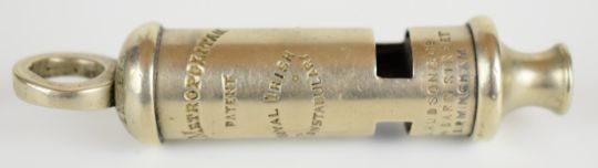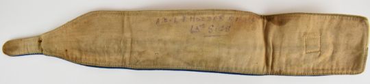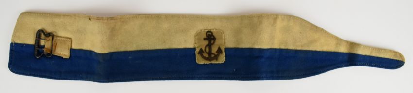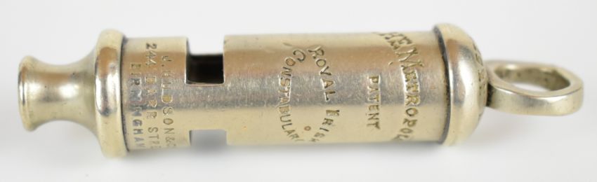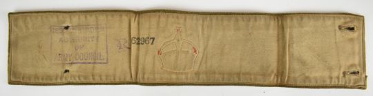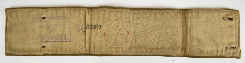 Militaria to include Lord Derby armband with stampings and number 62967, a British armband, potentially a WW1 British Signallers brassard or naval, with a fouled anchor insignia to the centre, interior named A.B.L. P. Hodder, 63rd Sigs, also indistinctly numbered R4400, J. Hudson & Co Royal Irish Constabulary whistle and a JR Gaunt London Guards badge