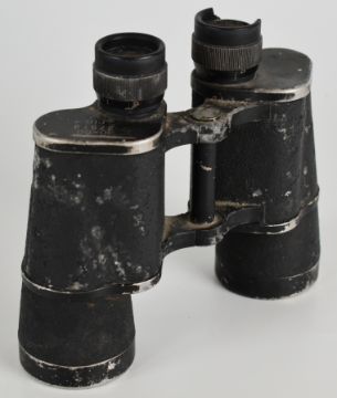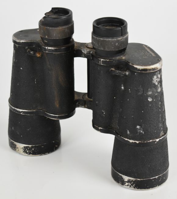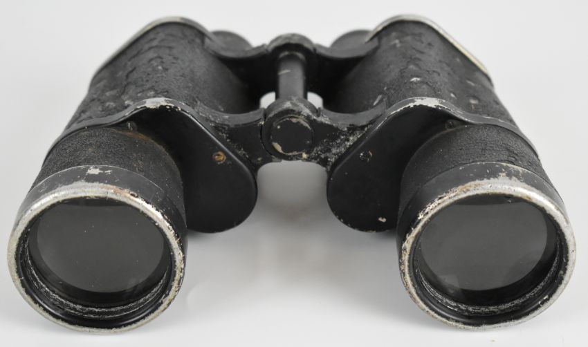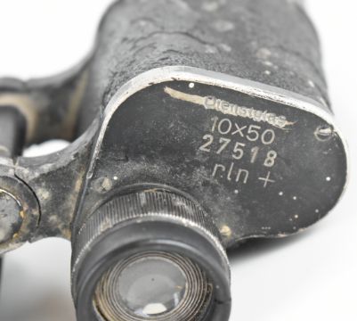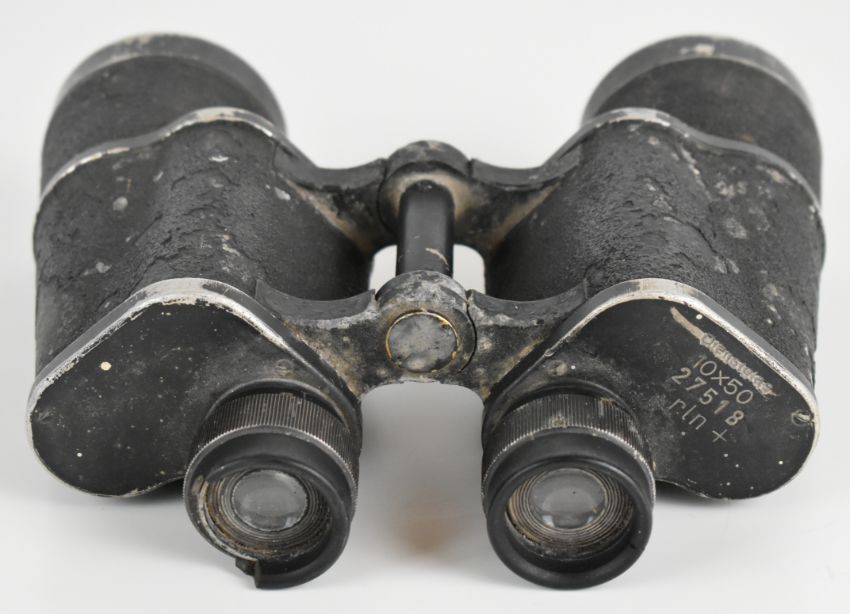 German WW2 10x50 Zeiss Dienstglas binoculars, stamped with manufacture code rln+ (Carl Zeiss, Jena), serial number 27518