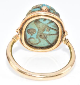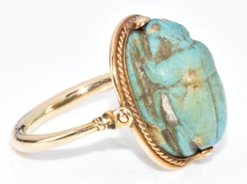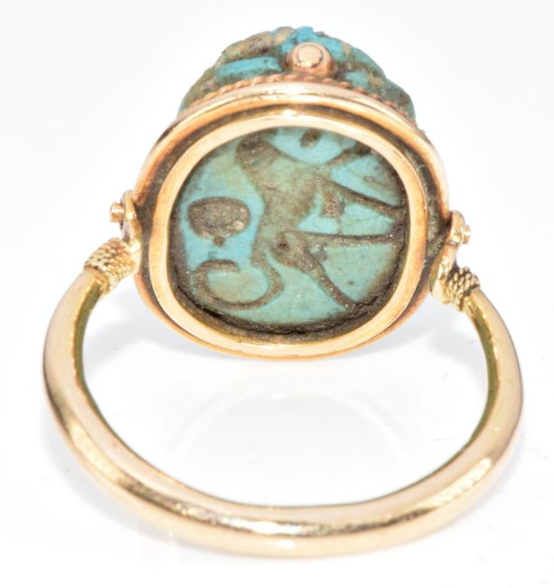 An 18ct gold ring set with a scarab beetle, 4.8g, size M