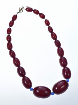 A graduated single strand of cherry amber necklace made up of twenty one oval beads, the largest 23.8 x 35mm and the smallest 9.8 x 14.7mm, 68g