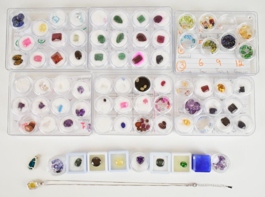 A collection of loose gemstones including topaz (3.5ct), oval cut amethyst (9.3ct), sunstone, two pear cut amethysts (4.7ct), two emerald cut topaz (6.8 & 5.6ct), heart cut aquamarine cabochon (0.3ct), synthetic ruby (11.7ct), oval cut garnet (7ct), emeralds, rubies, sapphires, three opal cabochons (1.1ct), four oval garnets (4.2ct), synthetic sapphires (5ct), emerald cut emerald (1.4ct), pear cut emerald (0.7ct), citrines (12.4ct), zircon (2.2ct), etc