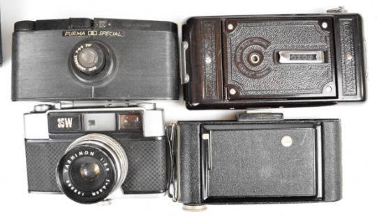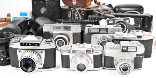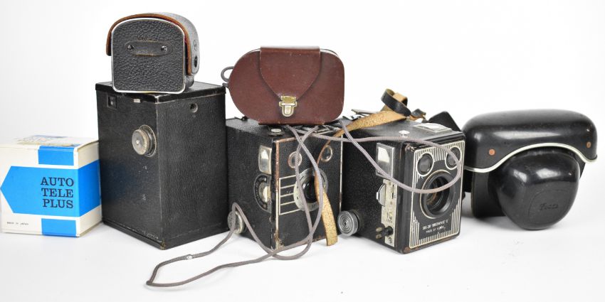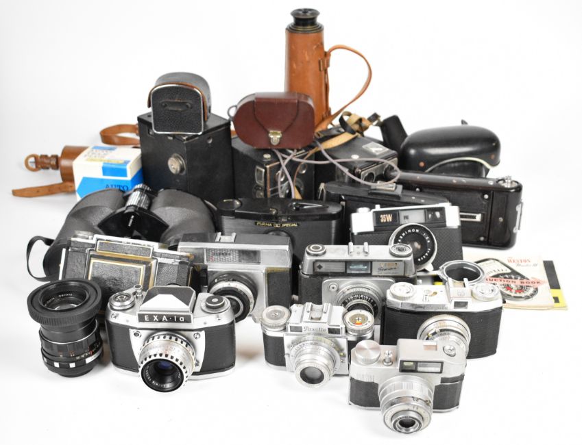 Collectable cameras to include Exa 1a 35mm SLR with E.Ludwig Meritar 2.2/50 and Meyer-Optik Orestor 2.8/100 lenses, Thagee extension tubes and a 2x converter, Bencini of Milan Comet, three Kodak box cameras, Purma Special Bakelite camera, Soho Cadet folding camera, Ehira-Six folding camera, Braun Paxette and a Parker-Hale 20x Spotter three draw telescope or spotting scope