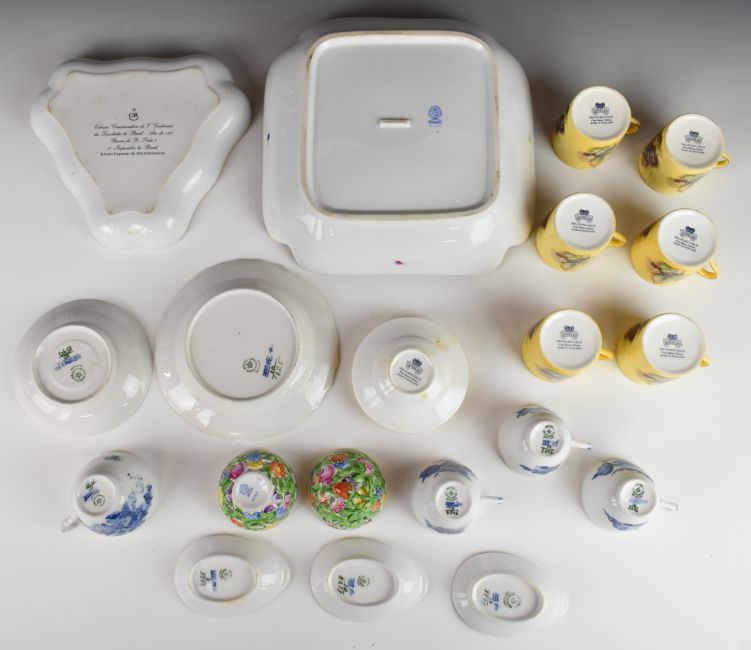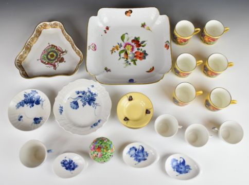 Herend porcelain dish and covered pot with floral decoration, six Aynsley Orchard Gold coffee cans and saucers, Copenhagen tea ware, Oficina Real shaped dish, etc