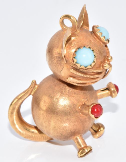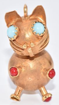 An 18ct gold pendant / charm in the form of a cat, 6.5g, 3.6cm