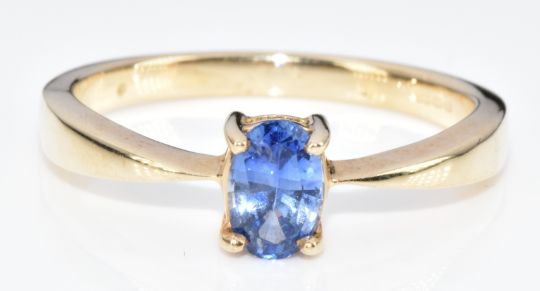 A 9ct gold ring set with an oval cut sapphire of approximately 0.45ct, 2.2g, size M