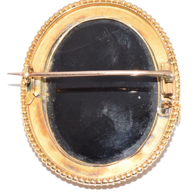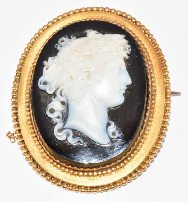 Victorian brooch set with an agate cameo of a young man, 22g, 3.8 x 4.7cm