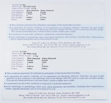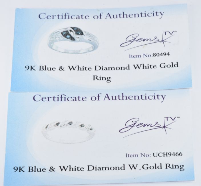 Two 9k white gold rings, both set with blue and white diamonds, 7.1g, size N