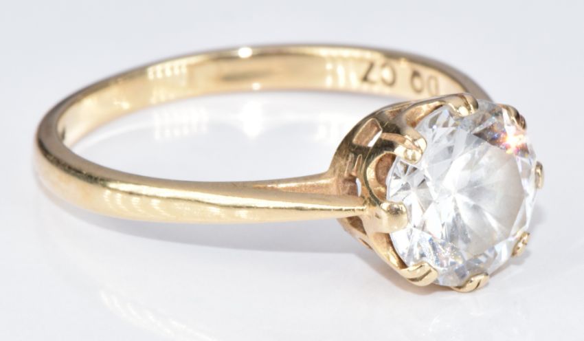 A 9ct gold ring set with a cubic zirconia, 3g, size P