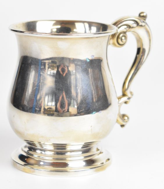 Elizabeth II feature hallmarked silver half pint tankard of baluster form with scroll handle, Sheffield 1979, maker Barrowclift Silvercraft, height 10cm, weight 166g