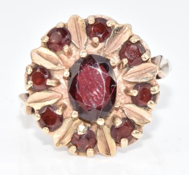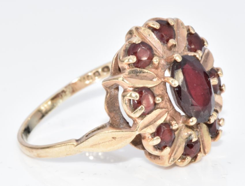 A 9ct gold ring set with garnets, 4.3g, size O