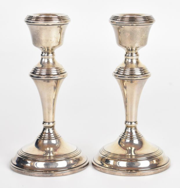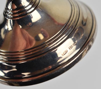 Pair of Elizabeth II hallmarked silver candlesticks, Birmingham 1961, maker W I Broadway & Co, height 14cm