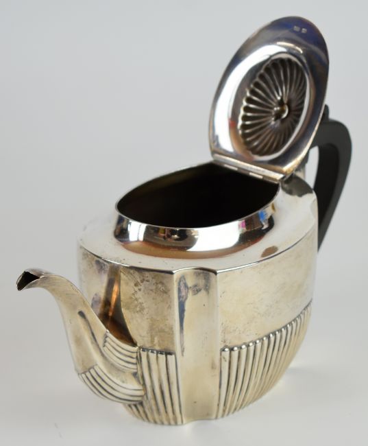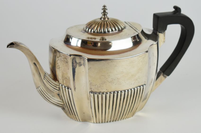 Victorian hallmarked silver teapot with reeded lower body, Sheffield 1891, maker Harrison Brothers & Howson, length 26cm, weight 457g all in