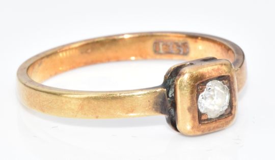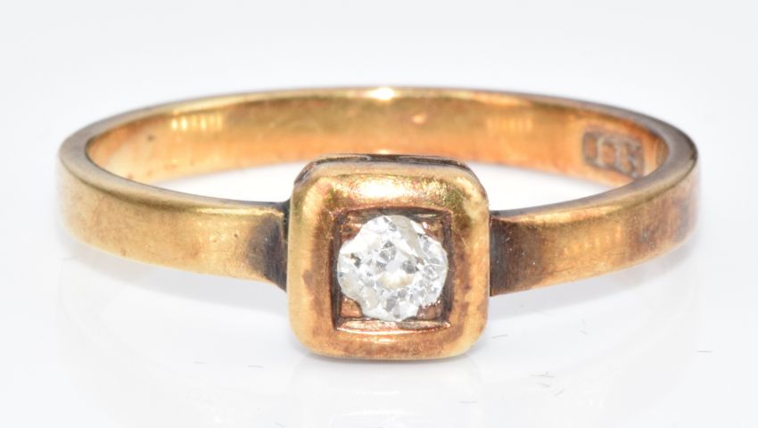 An 18ct gold ring set with an old cut diamond of approximately 0.14ct, size N