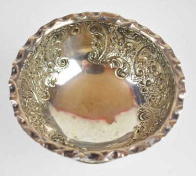 Elkington & Co Ltd Victorian hallmarked silver rose bowl with embossed decoration and detachable mesh cover, the main body Birmingham 1899, diameter 15cm, weight excluding mesh cover 191g