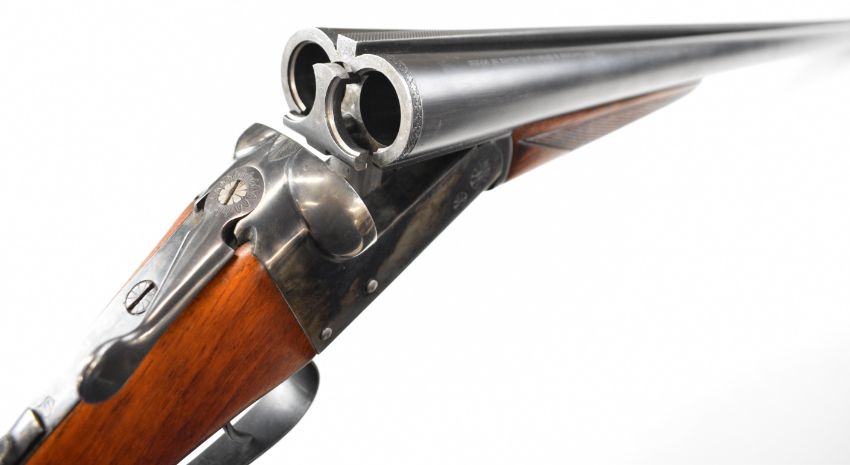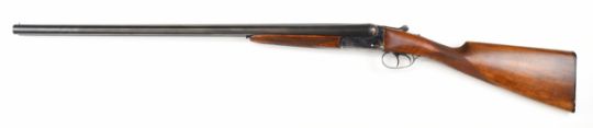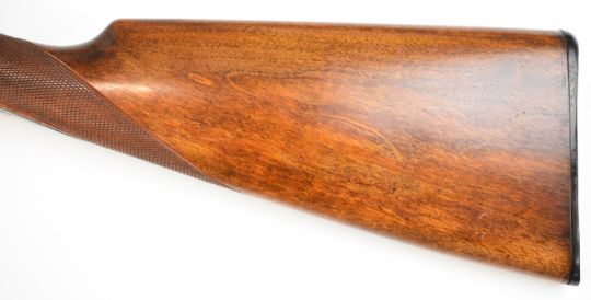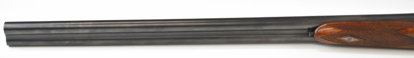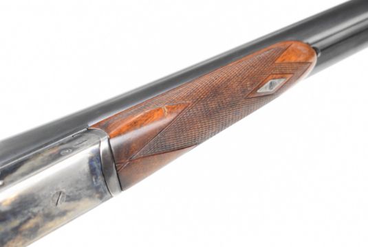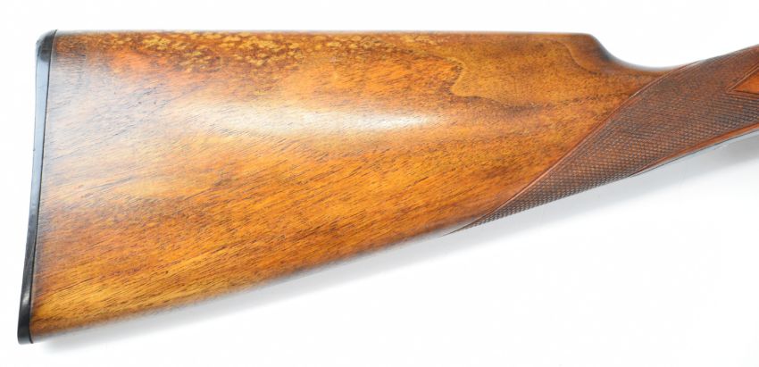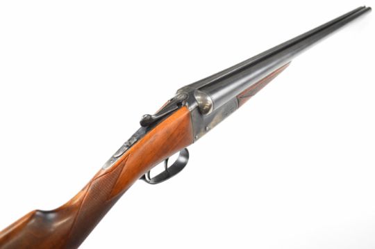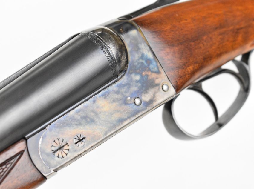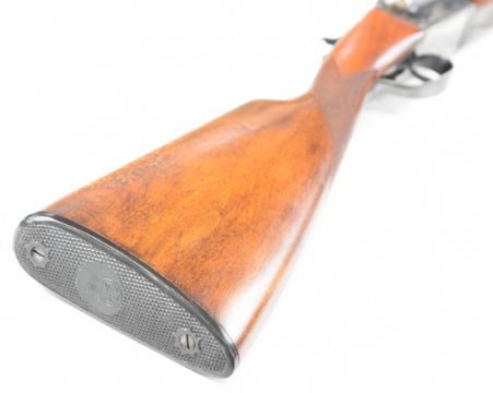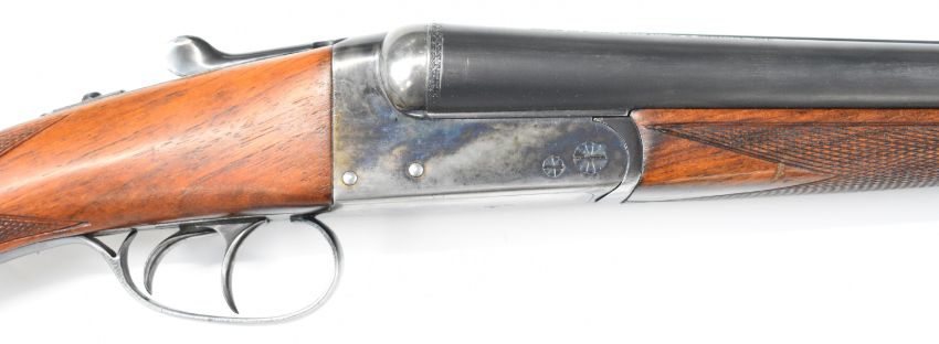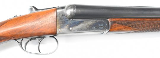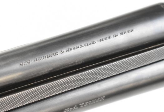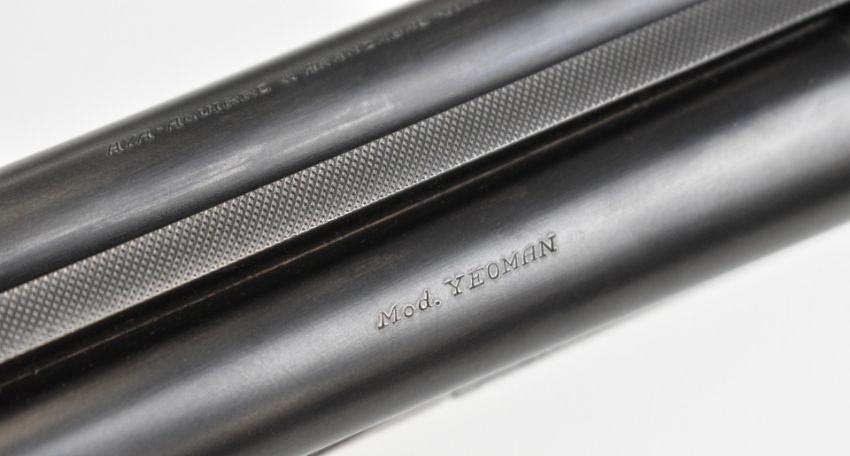 AYA Yeoman 12 bore side by side shotgun with chequered grip and forend, double trigger and named 28 inch barrels choked ½ and full, overall length 114.5cm, length of pull 37.5cm, serial number 579354. PLEASE NOTE THAT A VALID RELEVANT SHOTGUN CERTIFICATE IS REQUIRED TO VIEW OR PURCHASE THIS LOT AND FOR ALL SHOTGUNS OR RIFLES. PLEASE ENSURE YOU HAVE THE RELEVANT CERTIFICATE BEFORE BIDDING.