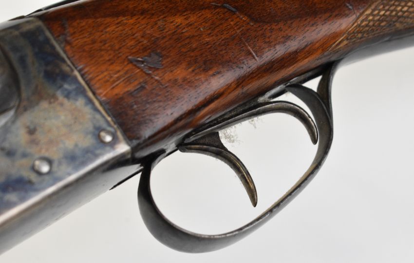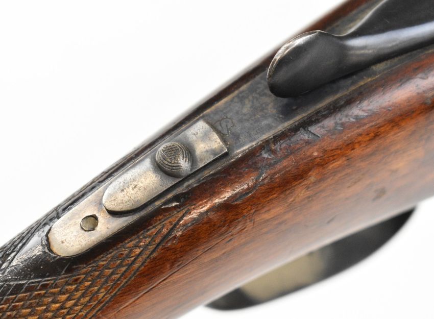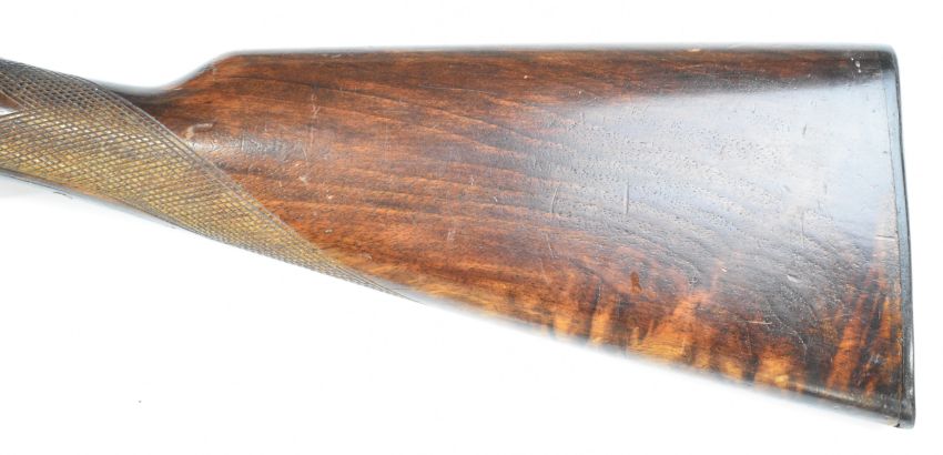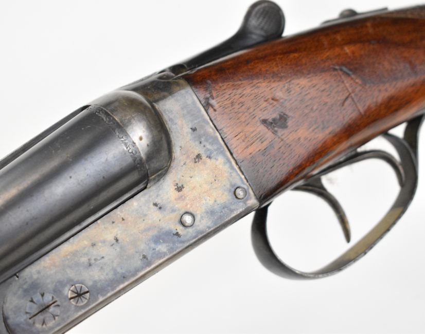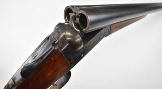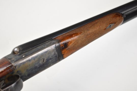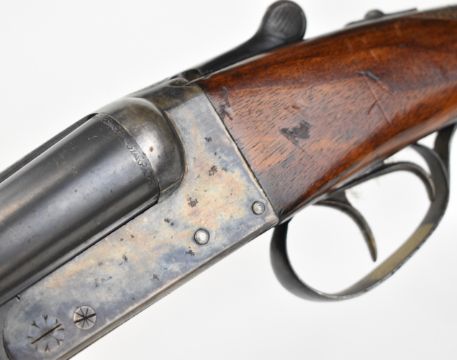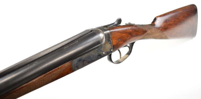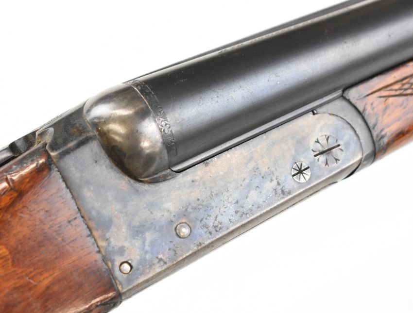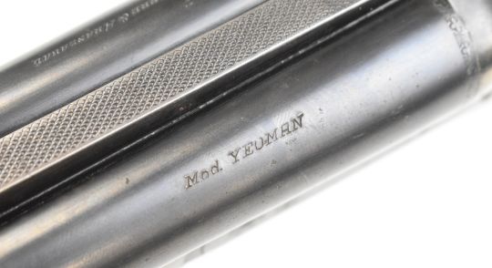 AYA Yeoman 12 bore side by side shotgun with chequered grip and forend, double trigger and named 28 inch barrels choked ¼ and ¾, overall length 113cm, length of pull 36.5cm, serial number 449359. PLEASE NOTE THAT A VALID RELEVANT SHOTGUN CERTIFICATE IS REQUIRED TO VIEW OR PURCHASE THIS LOT AND FOR ALL SHOTGUNS OR RIFLES. PLEASE ENSURE YOU HAVE THE RELEVANT CERTIFICATE BEFORE BIDDING.