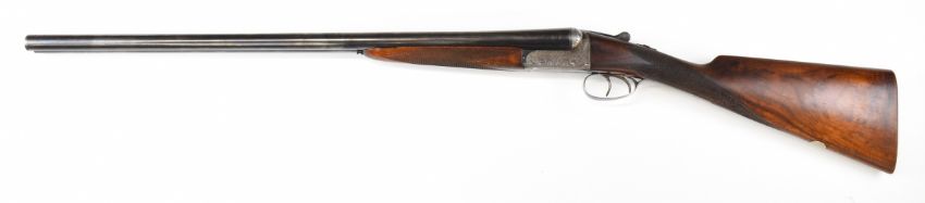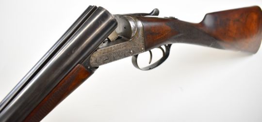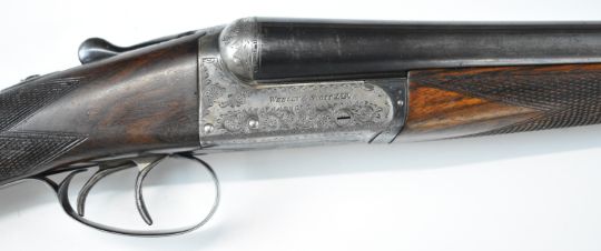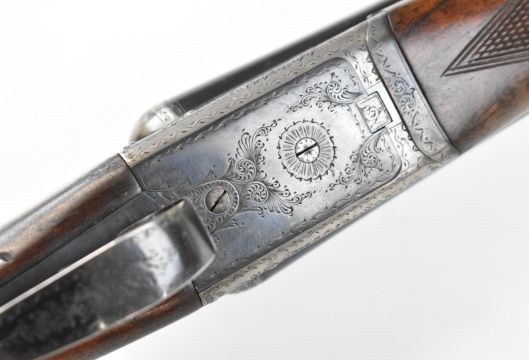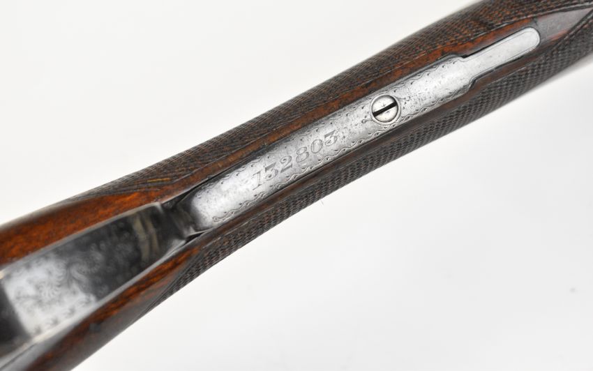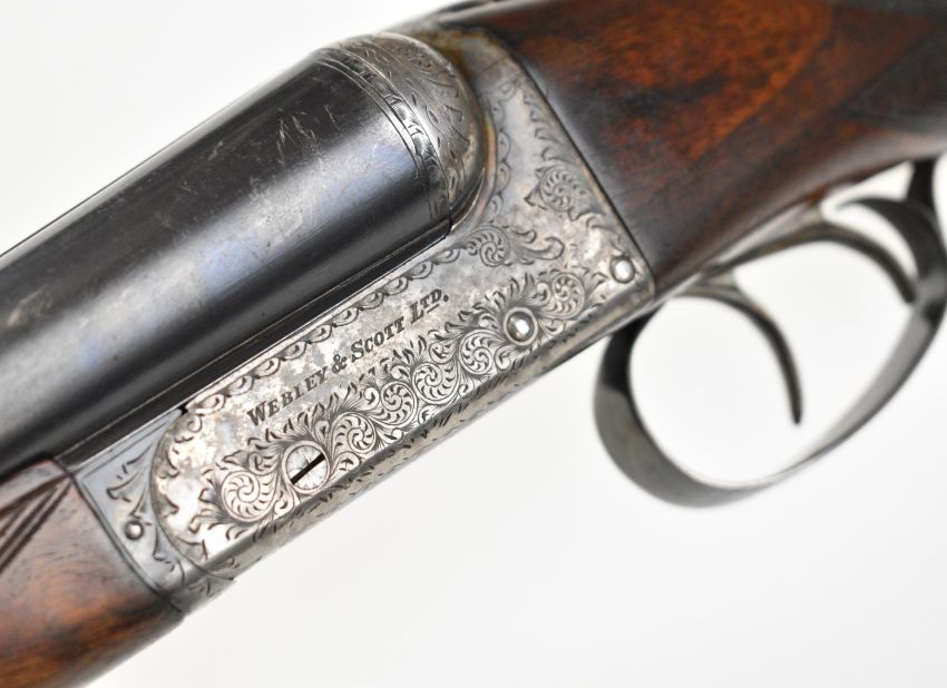Webley & Scott 700 12 bore side by side ejector shotgun with named and engraved locks, engraved underside, trigger guard, top plate, thumb lever and fences, chequered grip and forend, vacant cartouche to the underside of the stock, double trigger and named 26 inch barrels choked ¼ and ¾, overall length 106.5cm, length of pull 35.5cm, serial number 132803. PLEASE NOTE THAT A VALID RELEVANT SHOTGUN CERTIFICATE IS REQUIRED TO VIEW OR PURCHASE THIS LOT AND FOR ALL SHOTGUNS OR RIFLES. PLEASE ENSURE YOU HAVE THE RELEVANT CERTIFICATE BEFORE BIDDING.