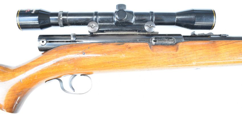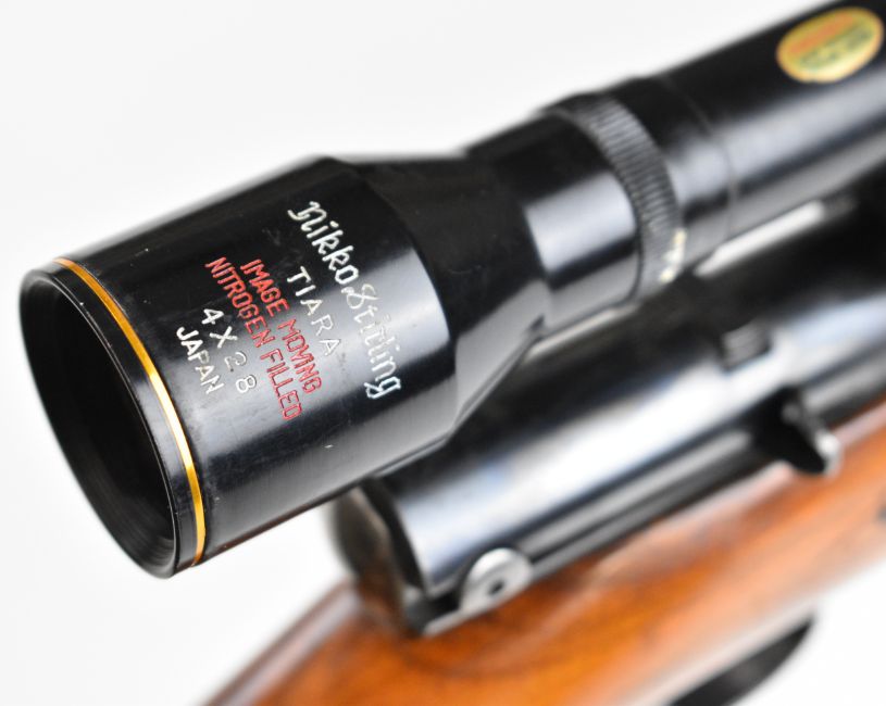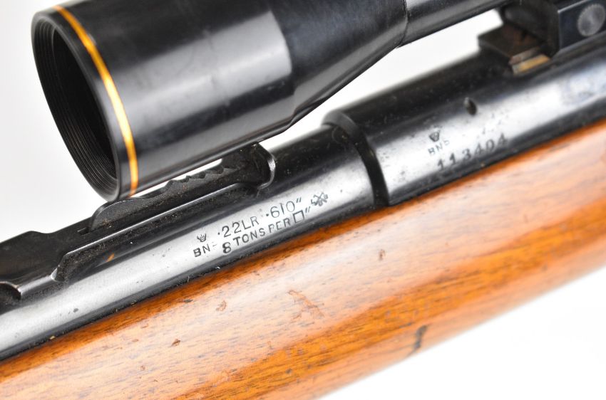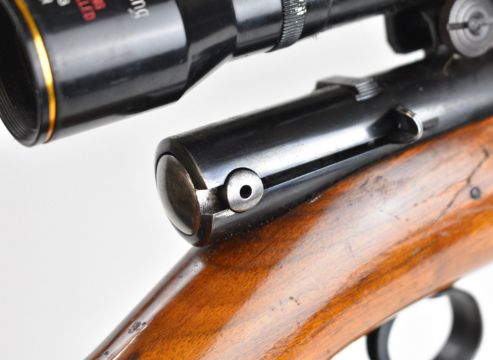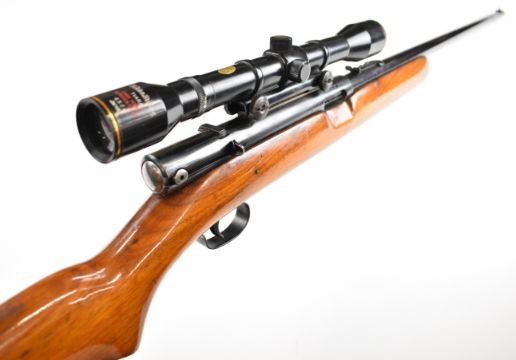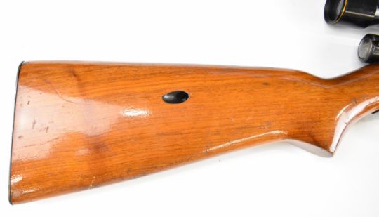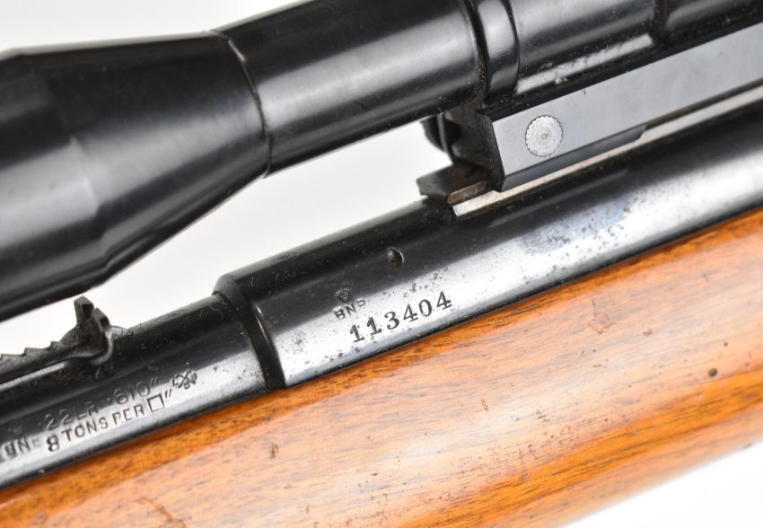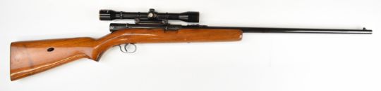 Winchester Model 74 .22 semi-automatic rifle with semi-pistol grip, adjustable sights, Nikko Stirling Tiara 4x28 scope and 24 inch barrel, overall length 111cm, serial number 113404. PLEASE NOTE THAT A VALID RELEVANT FIREARMS CERTIFICATE IS REQUIRED TO VIEW OR PURCHASE THIS LOT AND FOR ALL SHOTGUNS OR RIFLES. PLEASE ENSURE YOU HAVE THE RELEVANT CERTIFICATE BEFORE BIDDING.