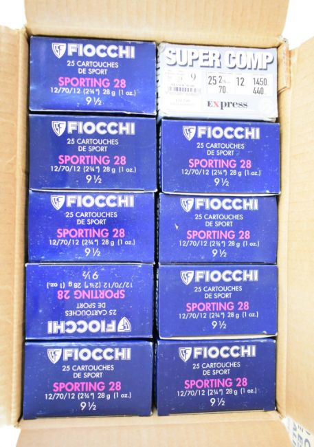 Five hundred 12 bore shotgun cartridges including Rio 20 Target Load 28g 8 shot and Fiocchi Sporting 28g 9.5 shot, all in original boxes. PLEASE NOTE THAT A VALID RELEVANT SHOTGUN CERTIFICATE IS REQUIRED TO VIEW OR PURCHASE THIS LOT AND FOR ALL SHOTGUNS, RIFLES OR AMMUNITION PLEASE ENSURE YOU HAVE THE RELEVANT CERTIFICATE BEFORE BIDDING. PLEASE ALSO NOTE THAT AMMUNITION CANNOT BE SENT IN THE POST.