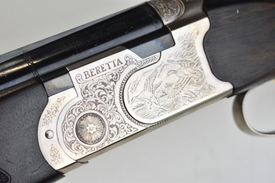 Beretta Model 687 Silver Pigeon III 12 bore over and under ejector shotgun with engraved scenes of birds to the locks, engraved underside, trigger guard, top plate and thumb lever, chequered semi-pistol grip and forend, vacant cartouche to the underside of the stock, vented top rib, gilt single trigger and 30 inch multi-choke barrels proofed for superior steel, overall length 121cm, length of pull 37.5cm, serial number R47215S, in original fitted case. PLEASE NOTE THAT A VALID RELEVANT SHOTGUN CERTIFICATE IS REQUIRED TO VIEW OR PURCHASE THIS LOT AND FOR ALL SHOTGUNS OR RIFLES PLEASE ENSURE YOU HAVE THE RELEVANT CERTIFICATE BEFORE BIDDING