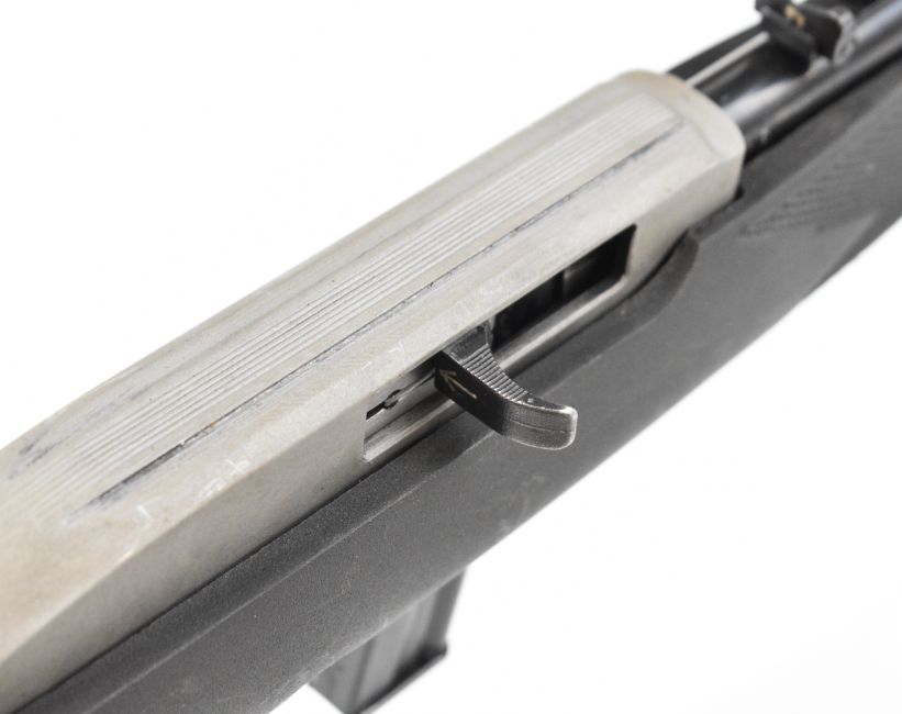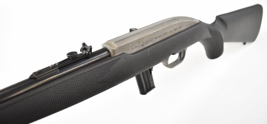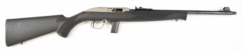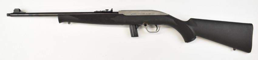 CBC Magtech 7022 .22 semi-automatic rifle with composite stock, chequered semi-pistol grip, multi-shot magazine, sling mounts, adjustable sights and 18 inch barrel, overall length 94.5cm, serial number AA070694. PLEASE NOTE THAT A VALID RELEVANT FIREARMS CERTIFICATE IS REQUIRED TO VIEW OR PURCHASE THIS LOT AND FOR ALL SHOTGUNS OR RIFLES PLEASE ENSURE YOU HAVE THE RELEVANT CERTIFICATE BEFORE BIDDING.