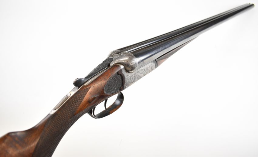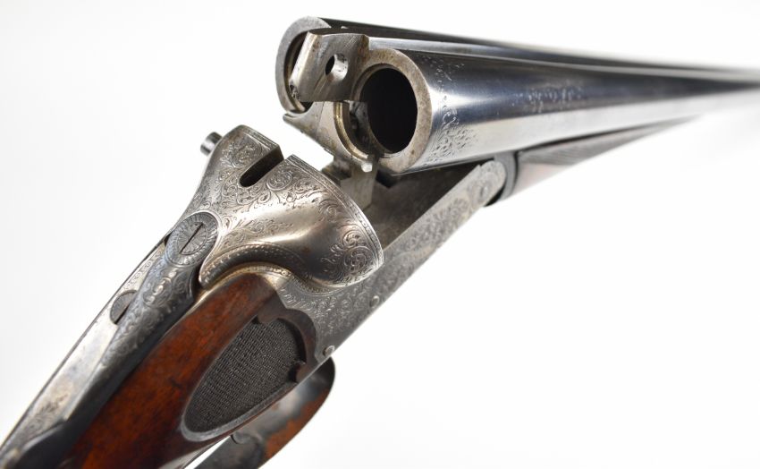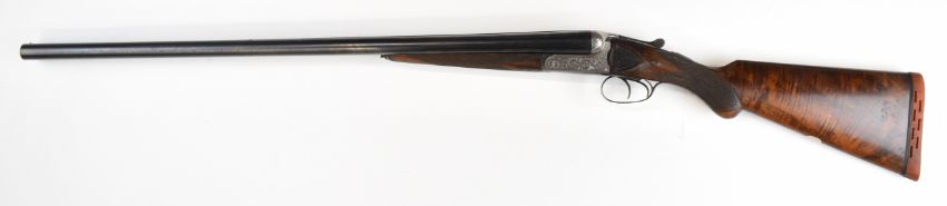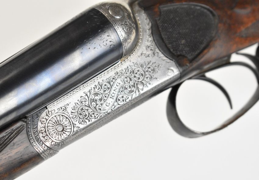 G King of Erdington 12 bore side by side ejector shotgun with gold named and engraved locks, engraved trigger guard, underside, top plate, thumb lever and fences, chequered semi-pistol grip and forend, carved teardrop to the wrist, vacant cartouche to the underside of the stock, double trigger and named 28 inch barrels choked ½ and full, overall length 113.5cm, length of pull 37.5cm, serial number 254. PLEASE NOTE THAT A VALID RELEVANT SHOTGUN CERTIFICATE IS REQUIRED TO VIEW OR PURCHASE THIS LOT AND FOR ALL SHOTGUNS OR RIFLES. PLEASE ENSURE YOU HAVE THE RELEVANT CERTIFICATE BEFORE BIDDING.