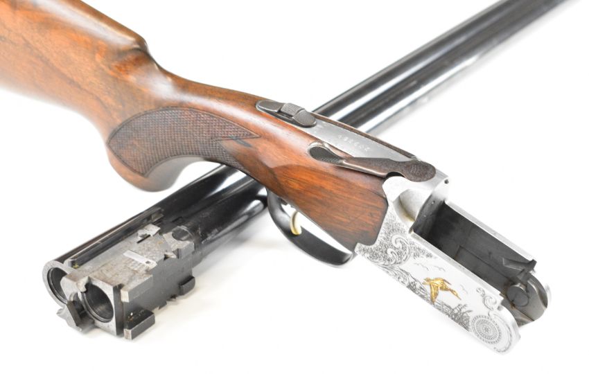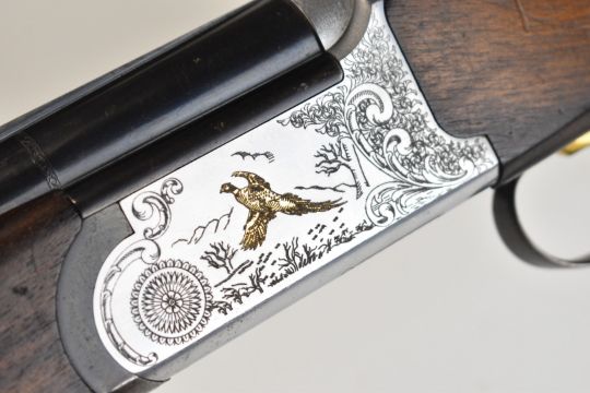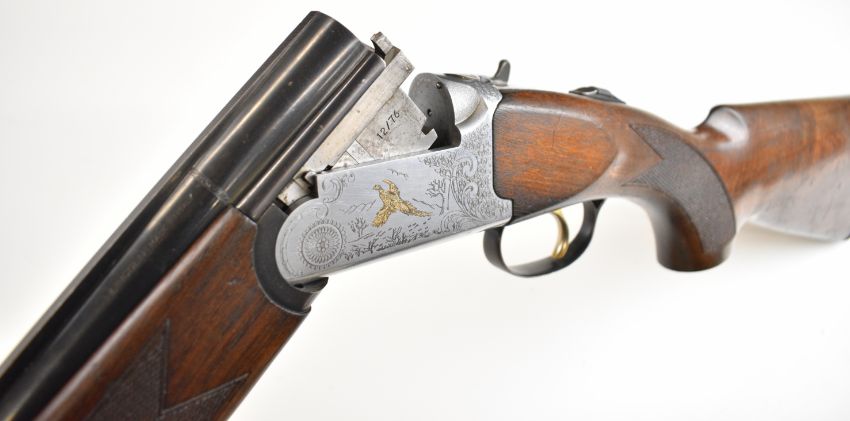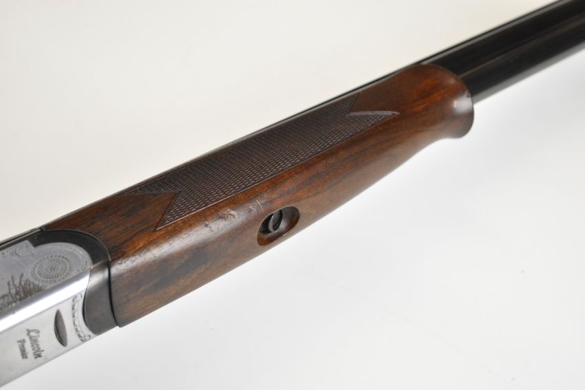 Lincoln Premier 12 bore over and under ejector shotgun with engraved scenes of gold birds to the action and trigger guard, engraved underside, top plate and thumb lever, chequered semi-pistol grip and forend, single trigger, vented top rib and 30 inch multi-choke barrels, overall length 119.5cm, length of pull 35.5cm, serial number 203359. PLEASE NOTE THAT A VALID RELEVANT SHOTGUN CERTIFICATE IS REQUIRED TO VIEW OR PURCHASE THIS LOT AND FOR ALL SHOTGUNS OR RIFLES PLEASE ENSURE YOU HAVE THE RELEVANT CERTIFICATE BEFORE BIDDING.