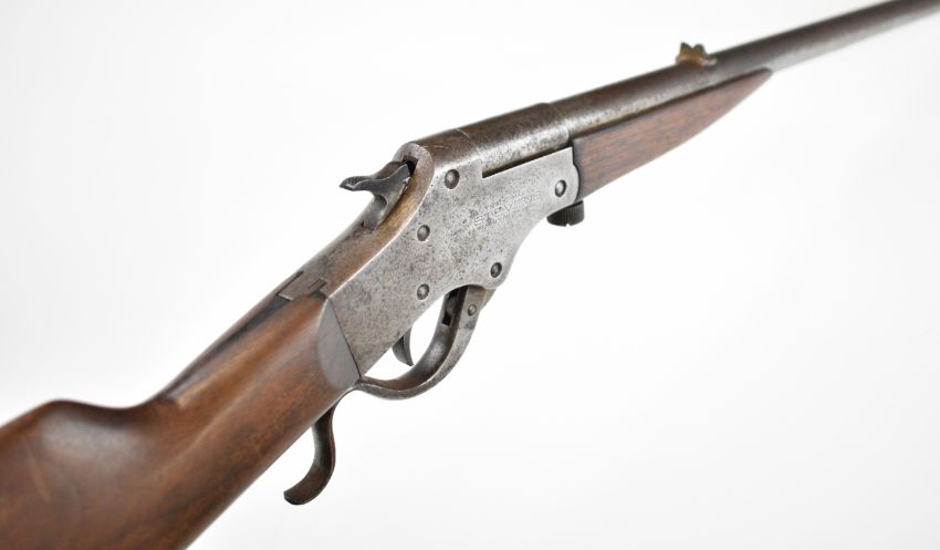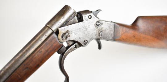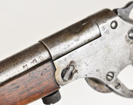 Deactivated Stevens Marksman .22 underlever-action take-down rifle with 'Page-Wood Gunmakers Ltd Bristol' stamped to the stock and 20 inch barrel, overall length 87cm, serial number 705, with deactivation certificate dated 29/09/2025.