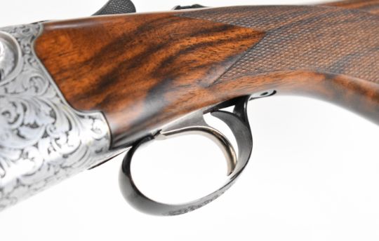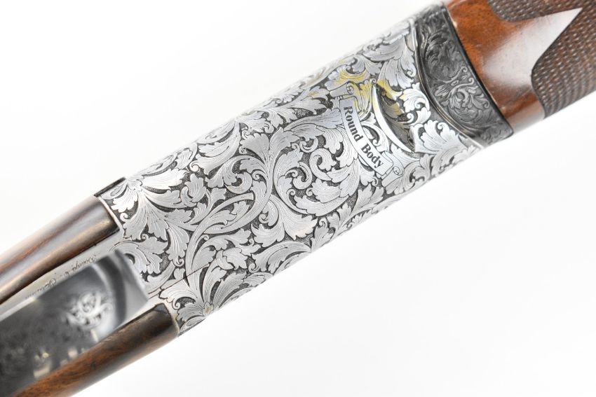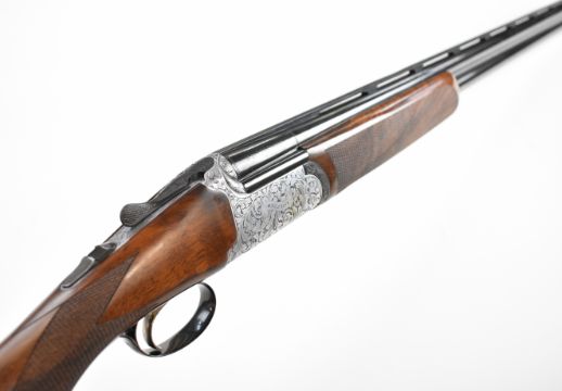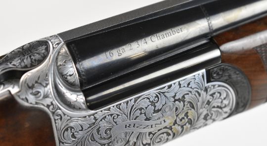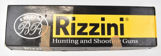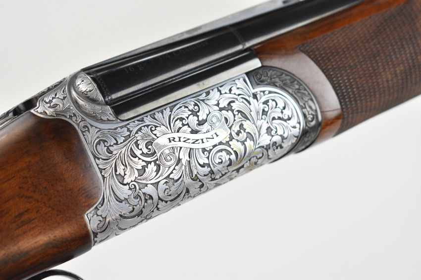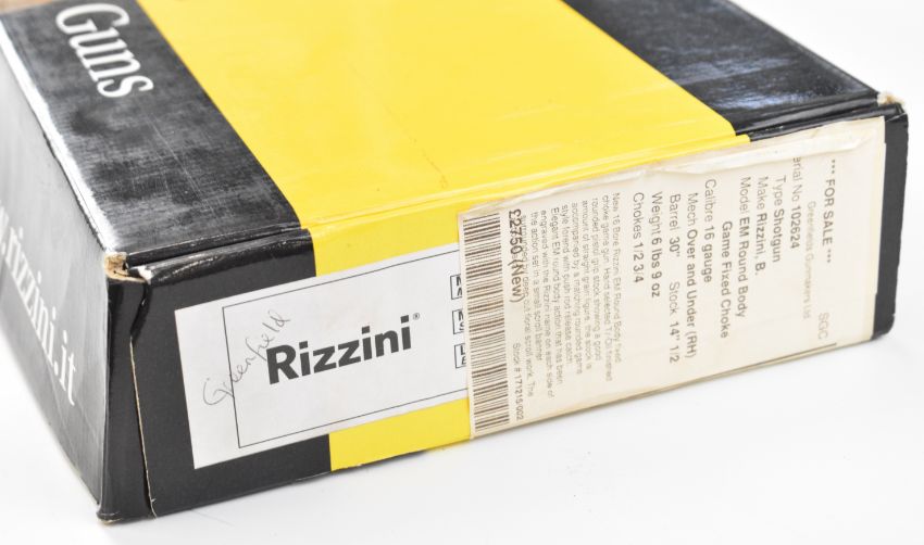 Rizzini Round Body 16 bore over and under ejector shotgun with scrolling engraving to the action, trigger guard, top plate and thumb lever, chequered semi-pistol grip and forend, single trigger, vented top rib and 30 inch barrels choked ½ and ¾, overall length 120.5cm, length of pull 37cm, serial number 102624, in original box with three additional chokes, choke key, guarantee, manual and dust covers. PLEASE NOTE THAT A VALID RELEVANT SHOTGUN CERTIFICATE IS REQUIRED TO VIEW OR PURCHASE THIS LOT AND FOR ALL SHOTGUNS OR RIFLES. PLEASE ENSURE YOU HAVE THE RELEVANT CERTIFICATE BEFORE BIDDING.