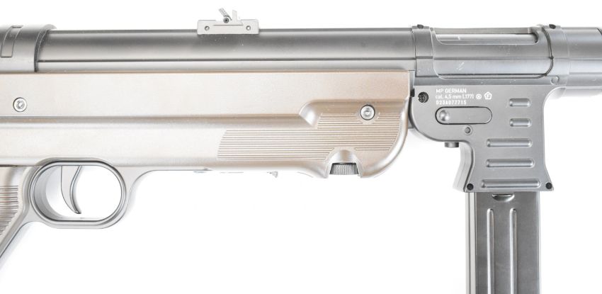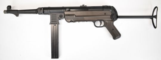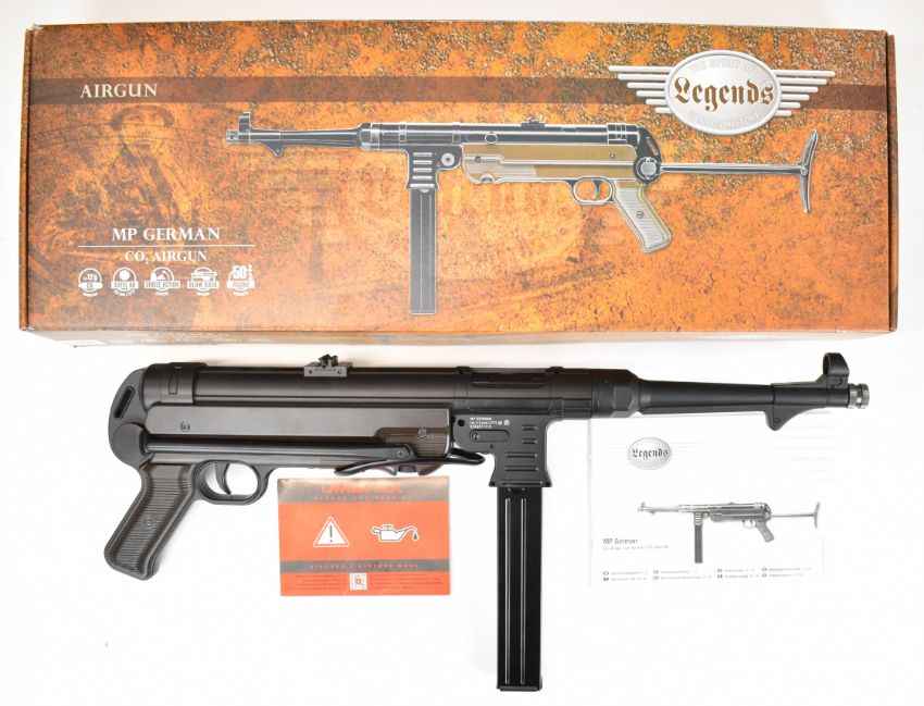 Umarex The Spirit of Legends Weapons History MP German style .177 COair rifle with folding stock and multi-shot magazine, serial number D23A077715, in original box with instruction manual. PLEASE NOTE: ALL POST - 1939 AIR GUNS CAN ONLY BE SHIPPED TO AN RFD AND NOT TO A HOME ADDRESS.