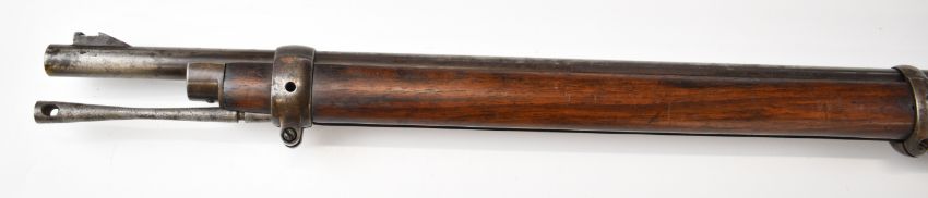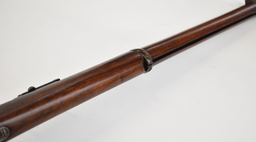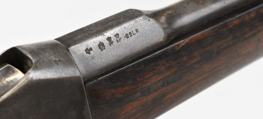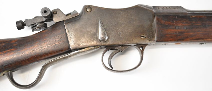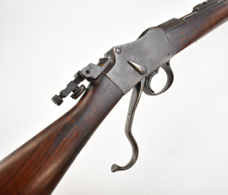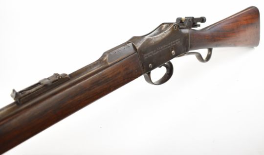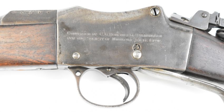Enfield Martini-Henry 1886 .577/450 converted to .22 by C G Bonehill of Birmingham for The Society of Miniature Rifle Clubs underlever-action service rifle with lock stamped with crown over 'VR' cypher and 'Enfield 1886 IV 1.', adjustable peep-hole target sights and 30 inch barrel, overall length 116.5cm, serial number 60212. PLEASE NOTE THAT A VALID RELEVANT FIREARMS CERTIFICATE IS REQUIRED TO VIEW OR PURCHASE THIS LOT AND FOR ALL SHOTGUNS OR RIFLES. PLEASE ENSURE YOU HAVE THE RELEVANT CERTIFICATE BEFORE BIDDING.