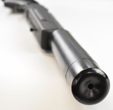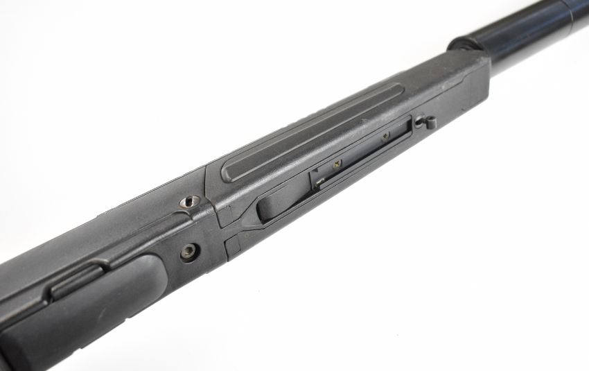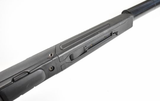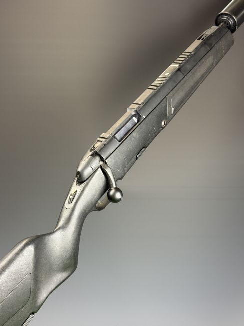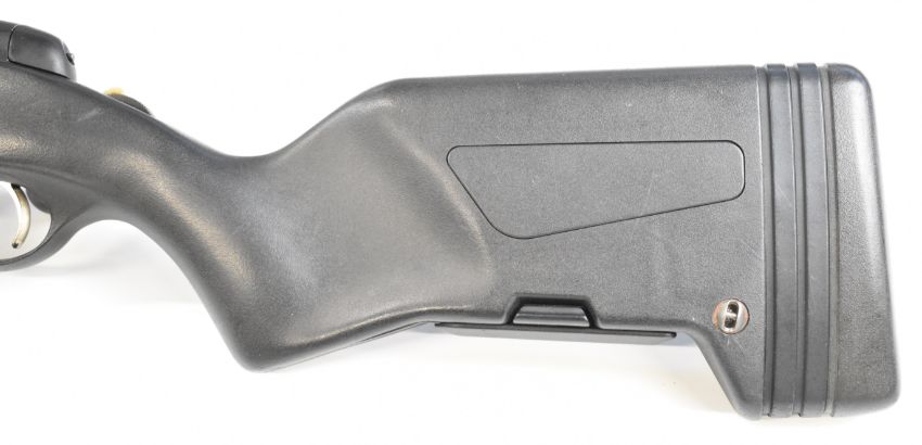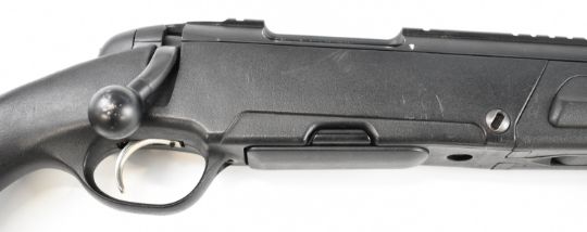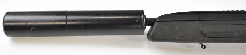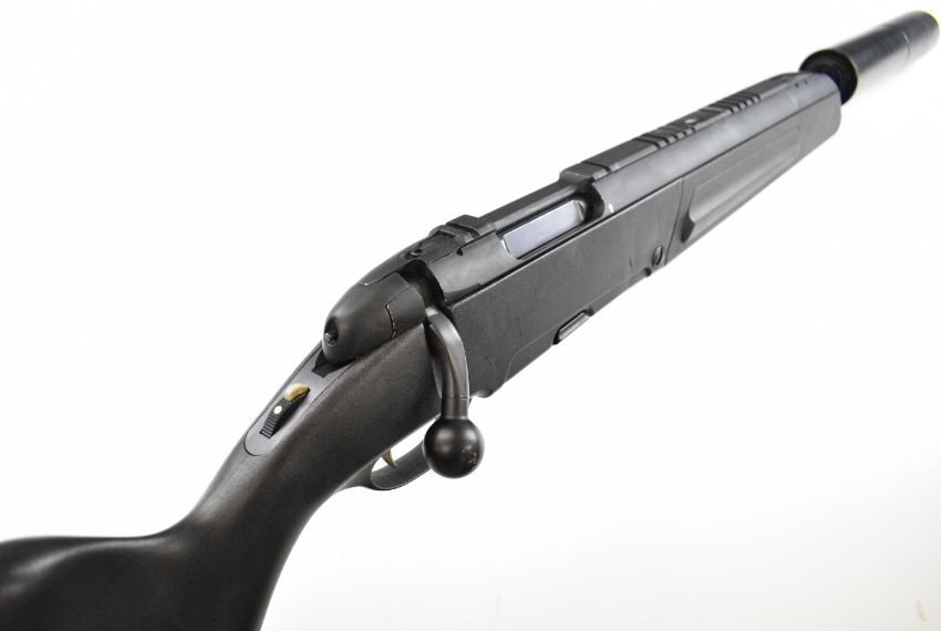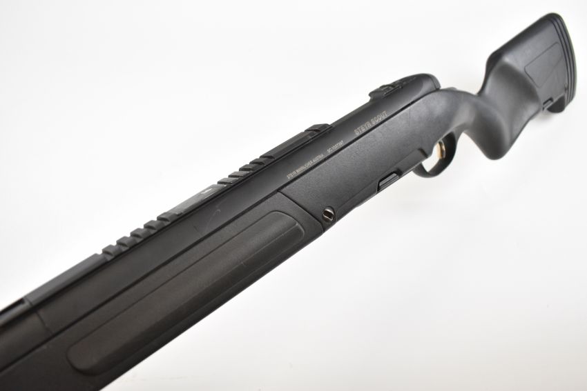Steyr Scout .243 bolt-action rifle with composite stock, semi-pistol grip, multi-shot magazine, spare magazine stored in the stock, folding bi-pod built into the stock, scope rail, sound moderator and 24 inch barrel, overall length 110cm, serial number SC1037397. PLEASE NOTE THAT A VALID RELEVANT FIREARMS CERTIFICATE IS REQUIRED TO VIEW OR PURCHASE THIS LOT AND FOR ALL SHOTGUNS OR RIFLES PLEASE ENSURE YOU HAVE THE RELEVANT CERTIFICATE BEFORE BIDDING.