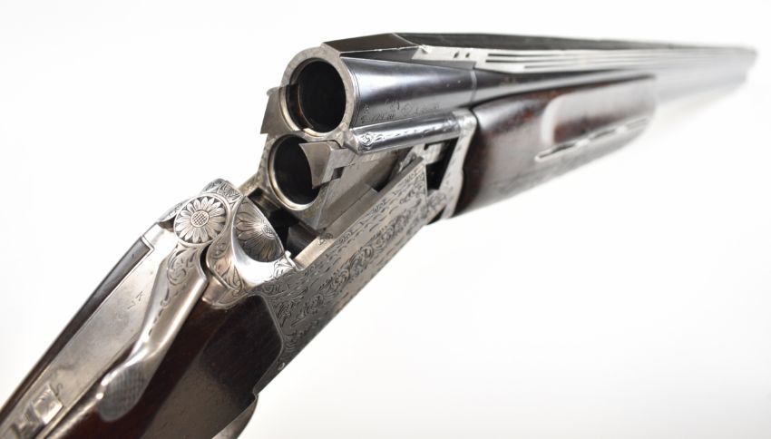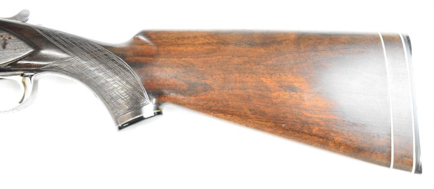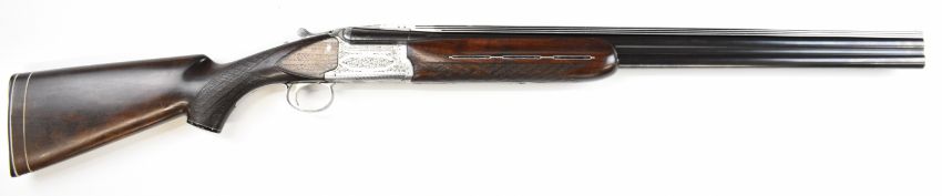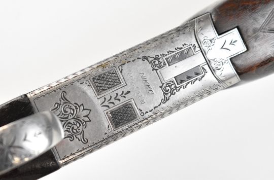 Nikko Shadow Indy 12 bore over and under ejector shotgun with engraved locks, trigger guard, underside and thumb lever, chequered semi-pistol grip and forend, single trigger, vented top rib and named 27.5 inch barrels choked cylinder and improved cylinder, overall length 112.5cm, length of pull 35.5cm, serial number K706774. PLEASE NOTE THAT A VALID RELEVANT SHOTGUN CERTIFICATE IS REQUIRED TO VIEW OR PURCHASE THIS LOT AND FOR ALL SHOTGUNS OR RIFLES PLEASE ENSURE YOU HAVE THE RELEVANT CERTIFICATE BEFORE BIDDING.