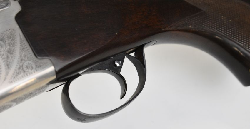 AYA 12 bore over and under ejector shotgun with engraved action, underside, trigger guard and thumb lever, chequered semi-pistol grip and forend, single trigger, vented top and central ribs and 30 inch multi-choke barrels, overall length 119cm, length of pull 36.5cm, serial number 584105. PLEASE NOTE THAT A VALID RELEVANT SHOTGUN CERTIFICATE IS REQUIRED TO VIEW OR PURCHASE THIS LOT AND FOR ALL SHOTGUNS OR RIFLES. PLEASE ENSURE YOU HAVE THE RELEVANT CERTIFICATE BEFORE BIDDING.