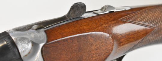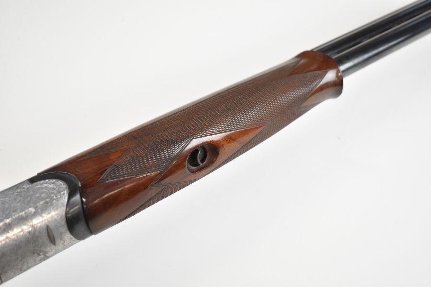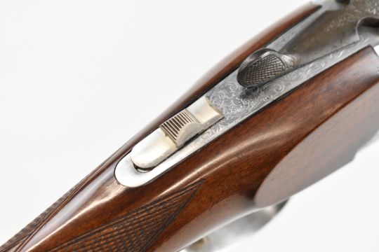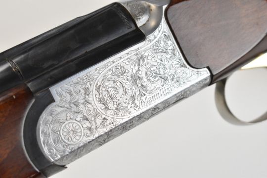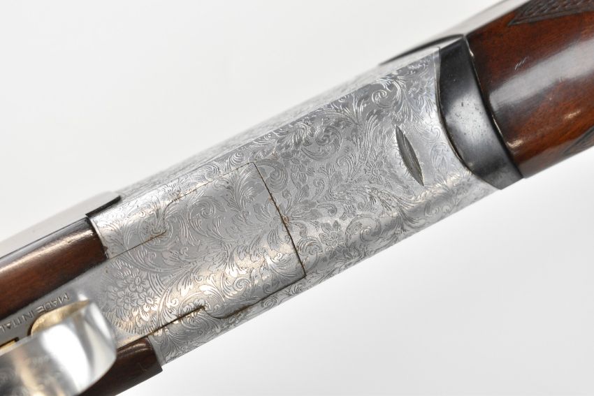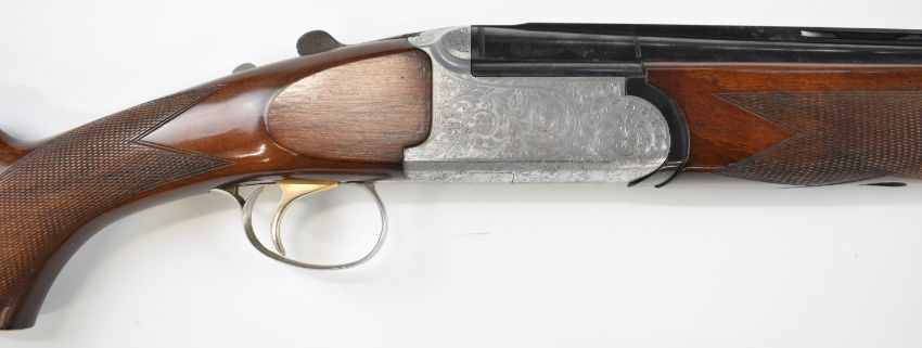 Browning Medallist Sporter 12 bore over and under ejector shotgun with named and ornately engraved locks, underside, trigger guard, top plate and thumb lever, chequered semi-pistol grip and forend, single trigger, vented top and central ribs and 27.75 inch multi-choke barrels, overall length 114cm, length of pull 36cm, serial number 22848. PLEASE NOTE THAT A VALID RELEVANT SHOTGUN CERTIFICATE IS REQUIRED TO VIEW OR PURCHASE THIS LOT AND FOR ALL SHOTGUNS OR RIFLES. PLEASE ENSURE YOU HAVE THE RELEVANT CERTIFICATE BEFORE BIDDING.