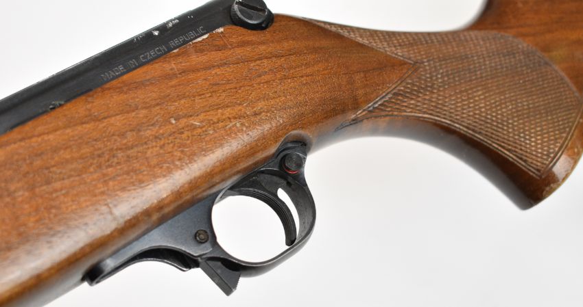 CZ 511 .22 semi-automatic rifle with chequered semi-pistol grip and forend, sling mounts and 14 inch barrel, overall length 78cm, serial number 58568. PLEASE NOTE THAT A VALID RELEVANT FIREARMS CERTIFICATE IS REQUIRED TO VIEW OR PURCHASE THIS LOT AND FOR ALL SHOTGUNS OR RIFLES PLEASE ENSURE YOU HAVE THE RELEVANT CERTIFICATE BEFORE BIDDING.