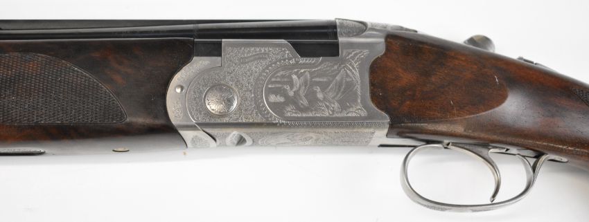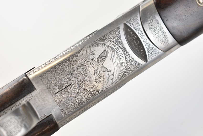Beretta Model 687 Silver Pigeon III limited edition 12 bore over and under ejector shotgun with Bottega C Giovanelli engraved scenes of birds to the action and underside, engraved trigger guard, top plate and thumb lever, chequered semi-pistol grip and forend, vacant cartouche to the underside of the stock, vented top rib, single trigger and 28 inch multi-choke barrels, overall length 116cm, length of pull 37.5cm, serial number R36848S, limited edition 289/500, in original fitted case with three additional chokes, choke key, dust bags, warranty, instruction manual, accessories, outer card box and Beretta slip. PLEASE NOTE THAT A VALID RELEVANT SHOTGUN CERTIFICATE IS REQUIRED TO VIEW OR PURCHASE THIS LOT AND FOR ALL SHOTGUNS OR RIFLES PLEASE ENSURE YOU HAVE THE RELEVANT CERTIFICATE BEFORE BIDDING