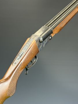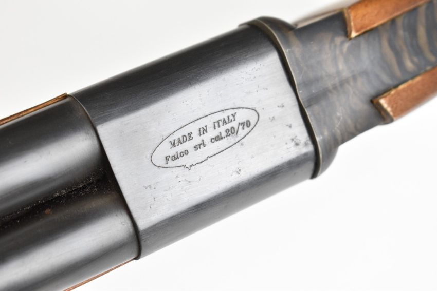 Falco 20 bore side by side folding poacher's shotgun with chequered semi-pistol grip and forend, sling mounts, lever action spurred trigger guard, double trigger and 28 inch barrels choked full, overall length 114cm, length of pull 37cm, serial number 39097. PLEASE NOTE THAT A VALID RELEVANT SHOTGUN CERTIFICATE IS REQUIRED TO VIEW OR PURCHASE THIS LOT AND FOR ALL SHOTGUNS OR RIFLES. PLEASE ENSURE YOU HAVE THE RELEVANT CERTIFICATE BEFORE BIDDING.