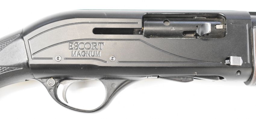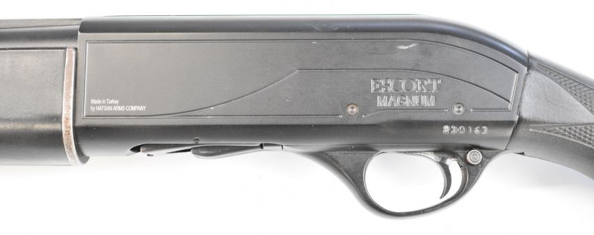 Hatsan Escort Magnum 12 bore 3-shot semi-automatic shotgun with composite stock, chequered semi-pistol grip, vented rib and 28 inch multi choke barrel, overall length 122.5cm, length of pull 37cm, serial number 230163. PLEASE NOTE THAT A VALID RELEVANT SHOTGUN CERTIFICATE IS REQUIRED TO VIEW OR PURCHASE THIS LOT AND FOR ALL SHOTGUNS OR RIFLES. PLEASE ENSURE YOU HAVE THE RELEVANT CERTIFICATE BEFORE BIDDING.