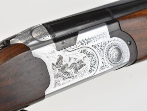 Beretta Model S687 Sporting 12 bore over and under ejector shotgun with engraved scenes of birds to the locks and underside, engraved trigger guard, top plate and thumb lever, chequered semi-pistol grip and forend, adjustable comb, Grayco recoil reducer butt plate, vacant cartouche to the underside of the stock, vented top rib, gilt single trigger and 29.5 inch multi-choke barrels, overall length 120.5cm, length of pull 38cm, serial number L89756B, with six additional Teague chokes, choke key and accessories. PLEASE NOTE THAT A VALID RELEVANT SHOTGUN CERTIFICATE IS REQUIRED TO VIEW OR PURCHASE THIS LOT AND FOR ALL SHOTGUNS OR RIFLES PLEASE ENSURE YOU HAVE THE RELEVANT CERTIFICATE BEFORE BIDDING.
