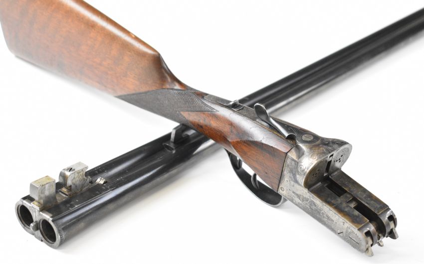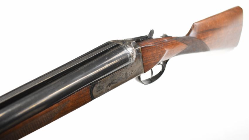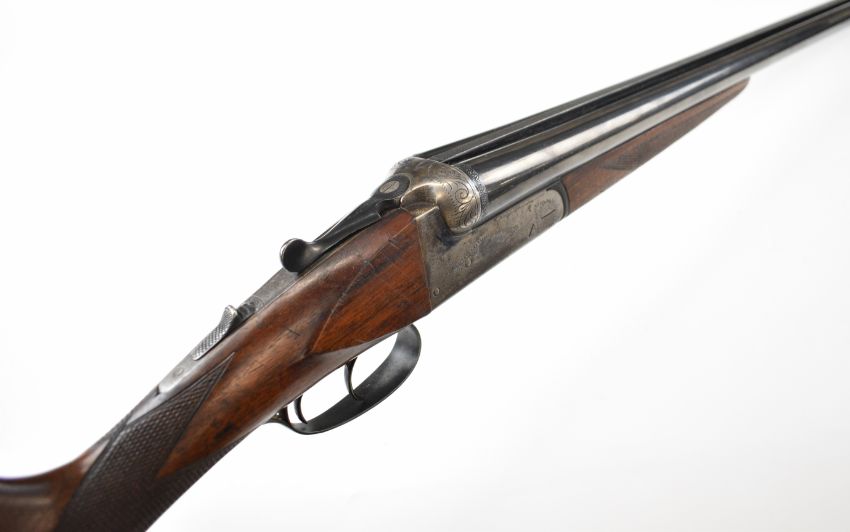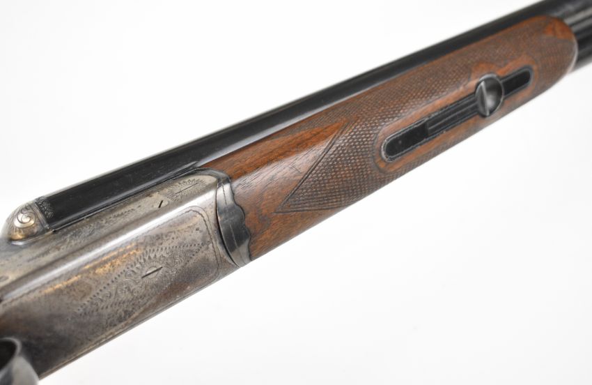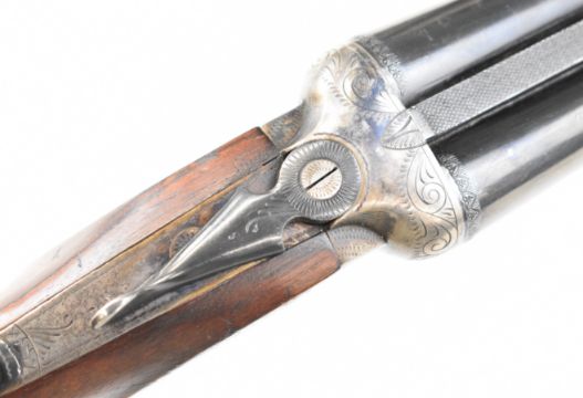 Laurona 16 bore side by side ejector shotgun with engraved locks, underside, trigger guard, thumb lever and fences, chequered grip and forend, double trigger and named 27.75 inch barrels, overall length 114.5cm, length of pull 37.5cm, serial number 139952. PLEASE NOTE THAT A VALID RELEVANT SHOTGUN CERTIFICATE IS REQUIRED TO VIEW OR PURCHASE THIS LOT AND FOR ALL SHOTGUNS OR RIFLES PLEASE ENSURE YOU HAVE THE RELEVANT CERTIFICATE BEFORE BIDDING.