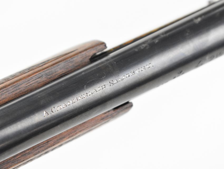 A Chamberlain of Salisbury Ward patent .410 folding poacher's shotgun with chequered grip and forend and 26 inch barrel, overall length 101.5cm, length of pull 32cm, serial number 1022. PLEASE NOTE THAT A VALID RELEVANT SHOTGUN CERTIFICATE IS REQUIRED TO VIEW OR PURCHASE THIS LOT AND FOR ALL SHOTGUNS OR RIFLES. PLEASE ENSURE YOU HAVE THE RELEVANT CERTIFICATE BEFORE BIDDING.