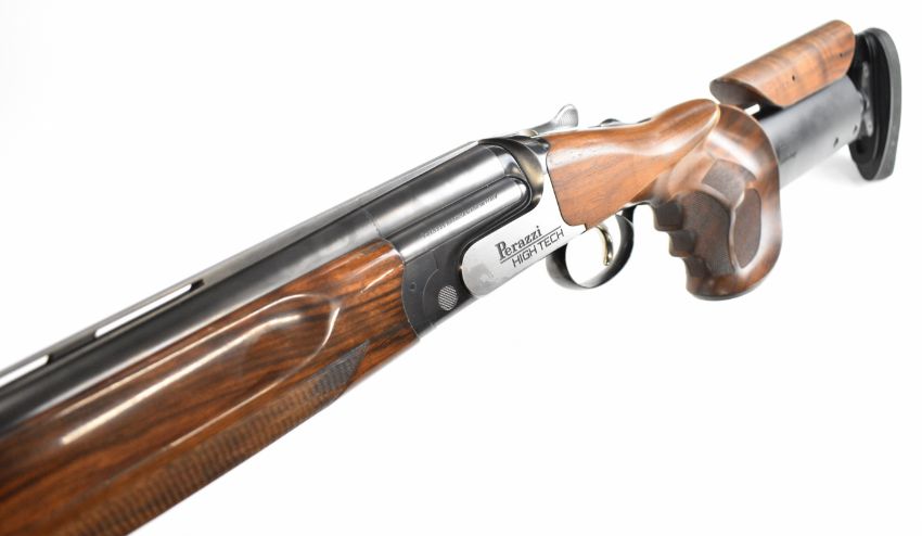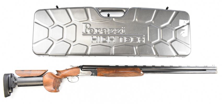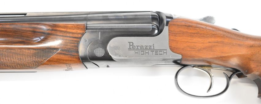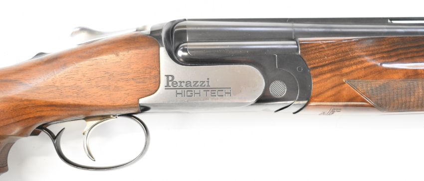 Perazzi High-Tech 12 bore over and under ejector shotgun with left handed Ergosign Evo Comp adjustable stock, named action, vented top and central ribs, single trigger and 30 inch multi-choke barrels, overall length 120cm, length of pull 38cm, serial number 159112, in original carry case with three additional Teague chokes, tools, stickers, accessories and related paperwork. PLEASE NOTE THAT A VALID RELEVANT SHOTGUN CERTIFICATE IS REQUIRED TO VIEW OR PURCHASE THIS LOT AND FOR ALL SHOTGUNS OR RIFLES. PLEASE ENSURE YOU HAVE THE RELEVANT CERTIFICATE BEFORE BIDDING.