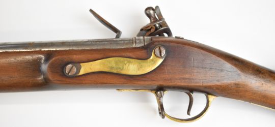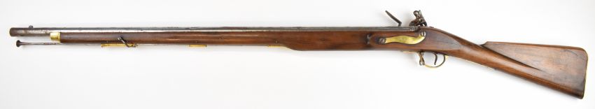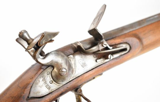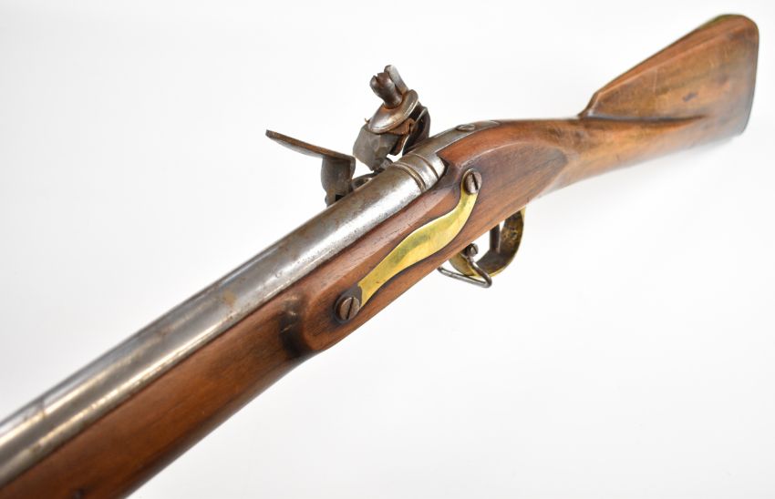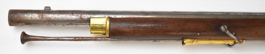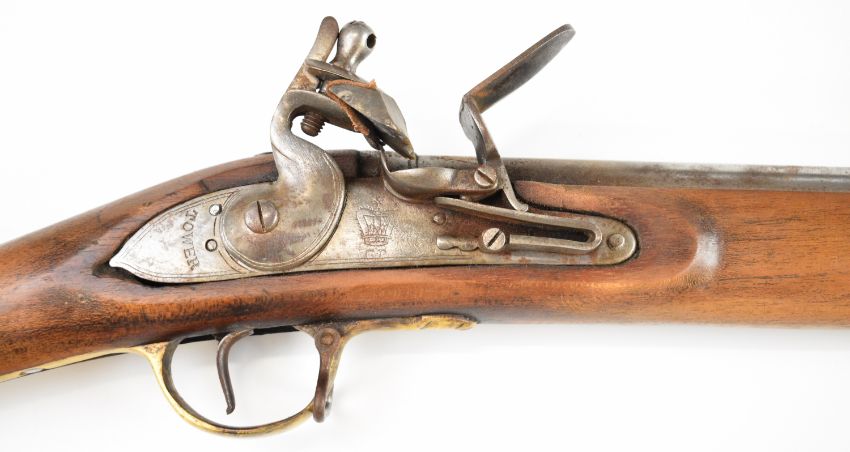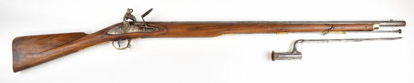 Brown Bess pattern 10 bore muzzle loading flintlock musket with lock stamped 'Tower' and with crown over 'GR' cypher, railed stock, brass trigger guard and butt plate, steel ramrod, sling suspension mounts, bayonet and 39 inch smooth bored barrel, overall length excluding bayonet 140cm, serial number 3559. PLEASE NOTE THAT A VALID RELEVANT SHOTGUN CERTIFICATE IS REQUIRED TO VIEW OR PURCHASE THIS LOT AND FOR ALL SHOTGUNS OR RIFLES PLEASE ENSURE YOU HAVE THE RELEVANT CERTIFICATE BEFORE BIDDING